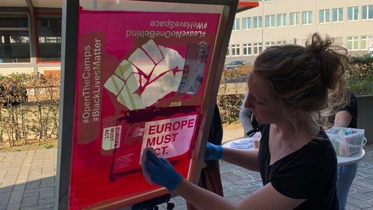 Vor dem Unterhaus (Friedrich-Karl-Str.4) könnt am Samstag von 14-18 Uhr lernen, wie Siebdruck funktioniert und euch eure eigene, selbstbedruckte Alltagsmaske mitnehmen, mit einem starken Statement (Europe Must Act). Weiße Masken und Farbe/Arbeitsmaterial stellen wir.