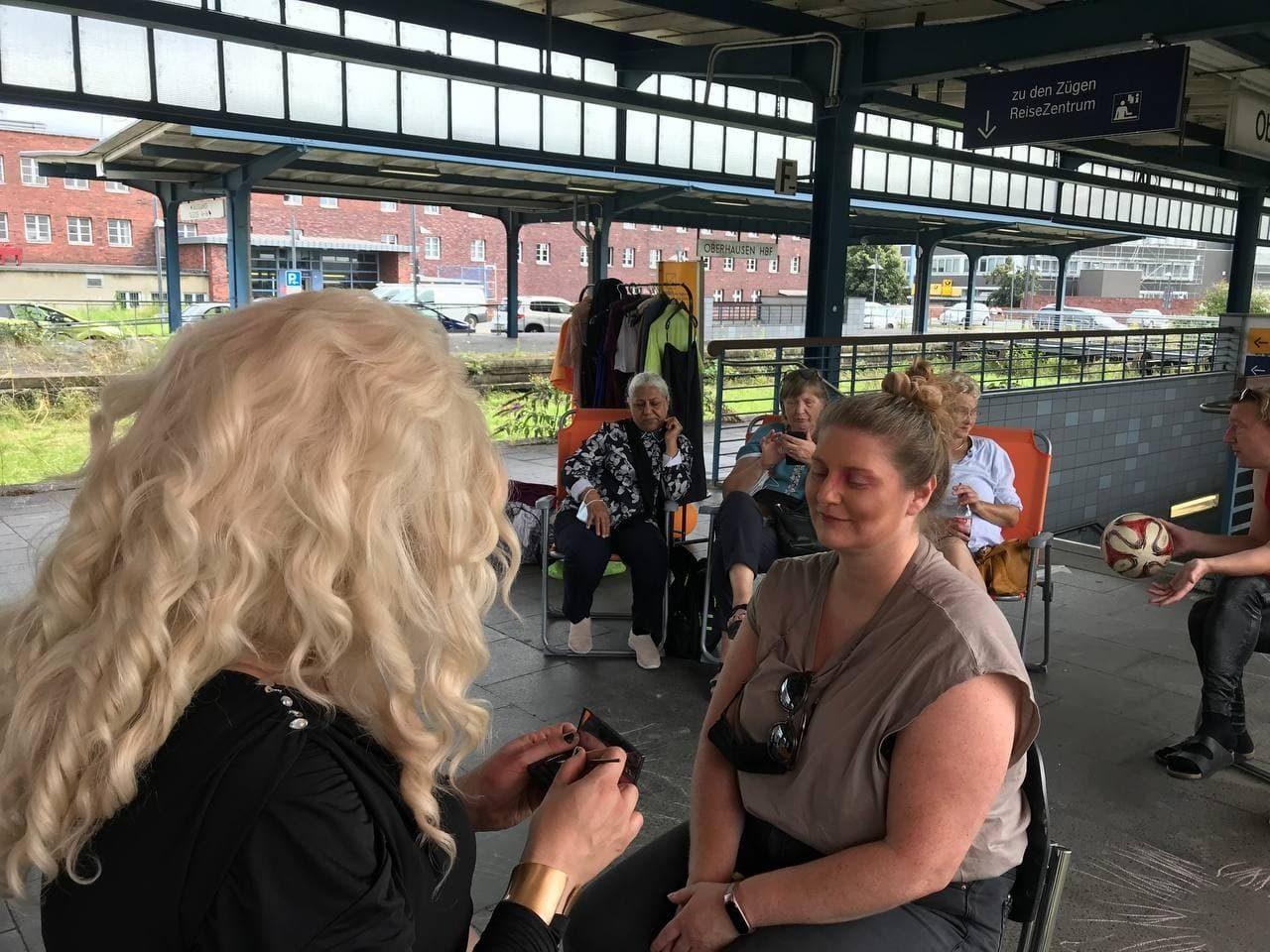 Am SA 21.08. reparierte das Repair-Café am Altmarkt mehrere Haushaltsgeräte – damit leider so beschäftigt, dass darüber die Fotos vergessen wurden ... Anders als am gleichen Tag bei Old Clothes – New Beauties, wo diverse Verwandlungen erfolgten. Zur Freude auch der Bahnreisenden nebenan.