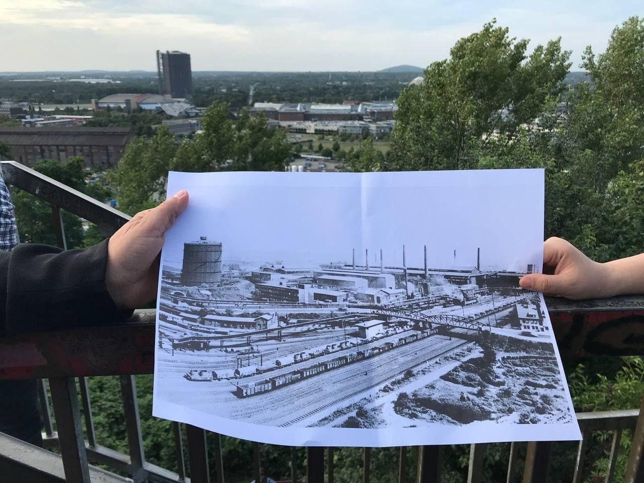 Weiter ging's am FR 13.08. mit Teil 3 des Seminars OBERHAUSEN – 175 Jahre Immigration. Wir erklommen die Knappenhalde und sangen dort tatsächlich das Steigerlied in deutscher, türkischer und arabischer Sprache. Hier hört man noch nichts davon, bald aber und erstmals in aller www-Welt.