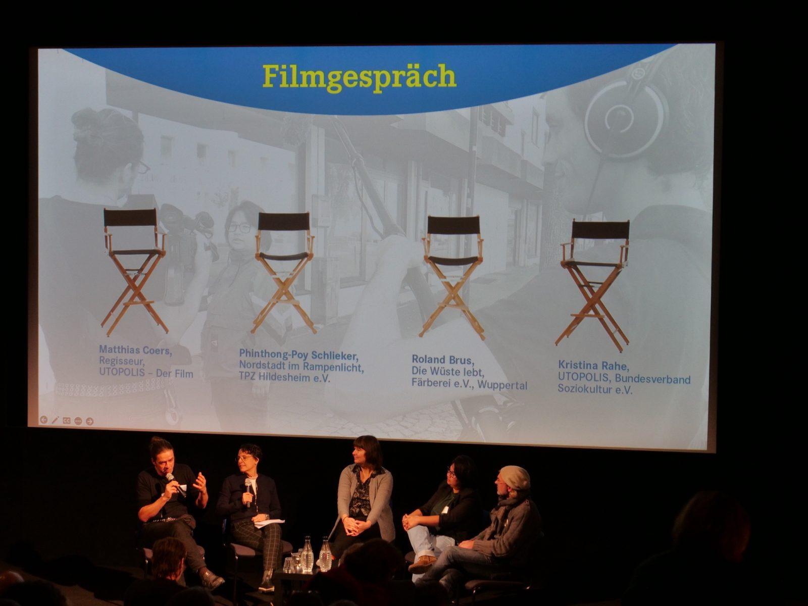 Denn der Zentral- und Höhepunkt dieser Abschluss-Veranstaltung war die Preview eines Kino-Films über die Utopolis-Arbeiten in allen 16 Standorten. Realisiert wurde er von unseren kitev-Partnern Matthias Coers und Grischa Dallmer. Unterstützt wurden diese Filmemacher von einem Dramaturgieteam aus 6 Utopolis-Mitwirkenden, darunter auch Stefan Schroer von kitev.